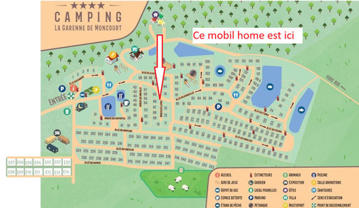 Le mobil home est installé au camping la Garenne de Moncourt à Rue **** sur un bel emplacement, avec peu de vis à vis et exposé plein SUD, ouvert du 1er Février au 30 Novembre, disposant de nombreuses activités en interne tels que les étangs de pêche, les piscines, la salle des fêtes et toutes ses animations.