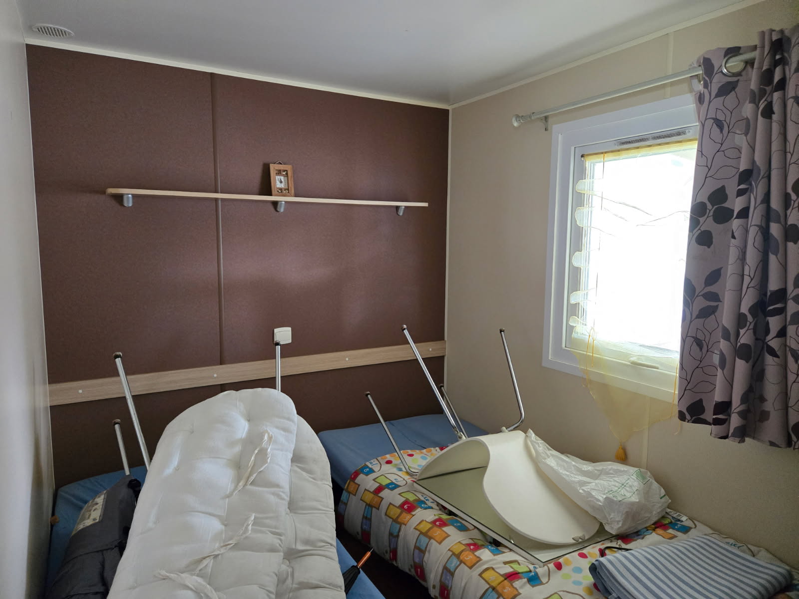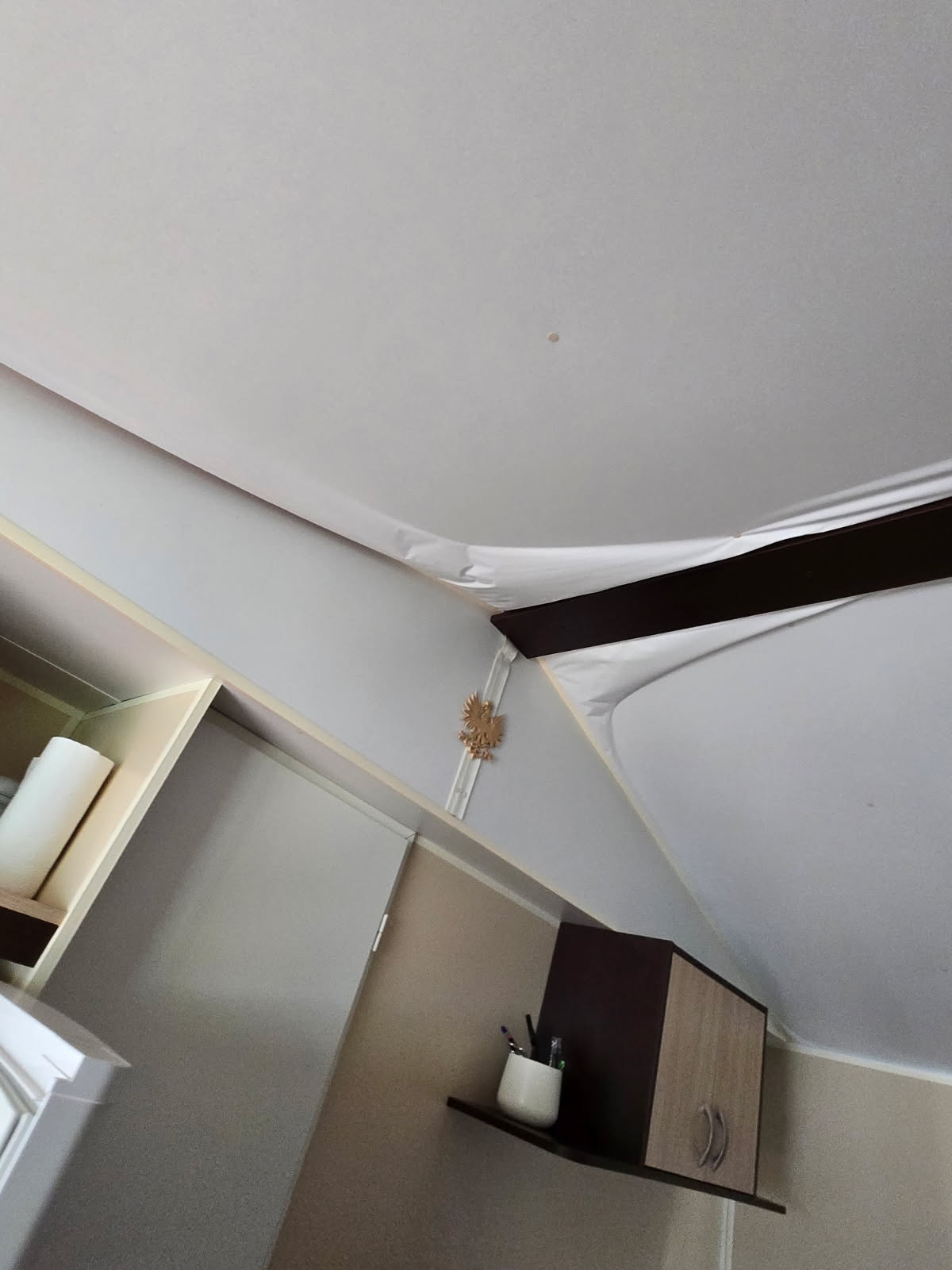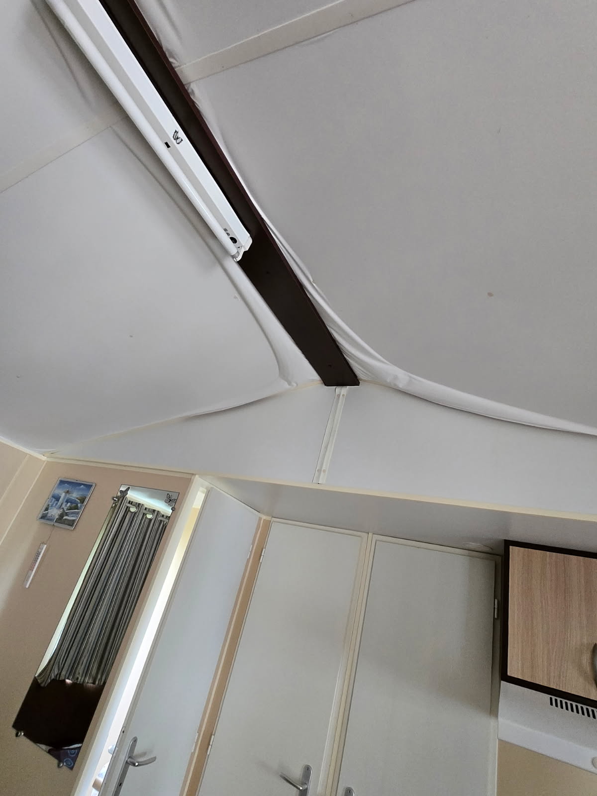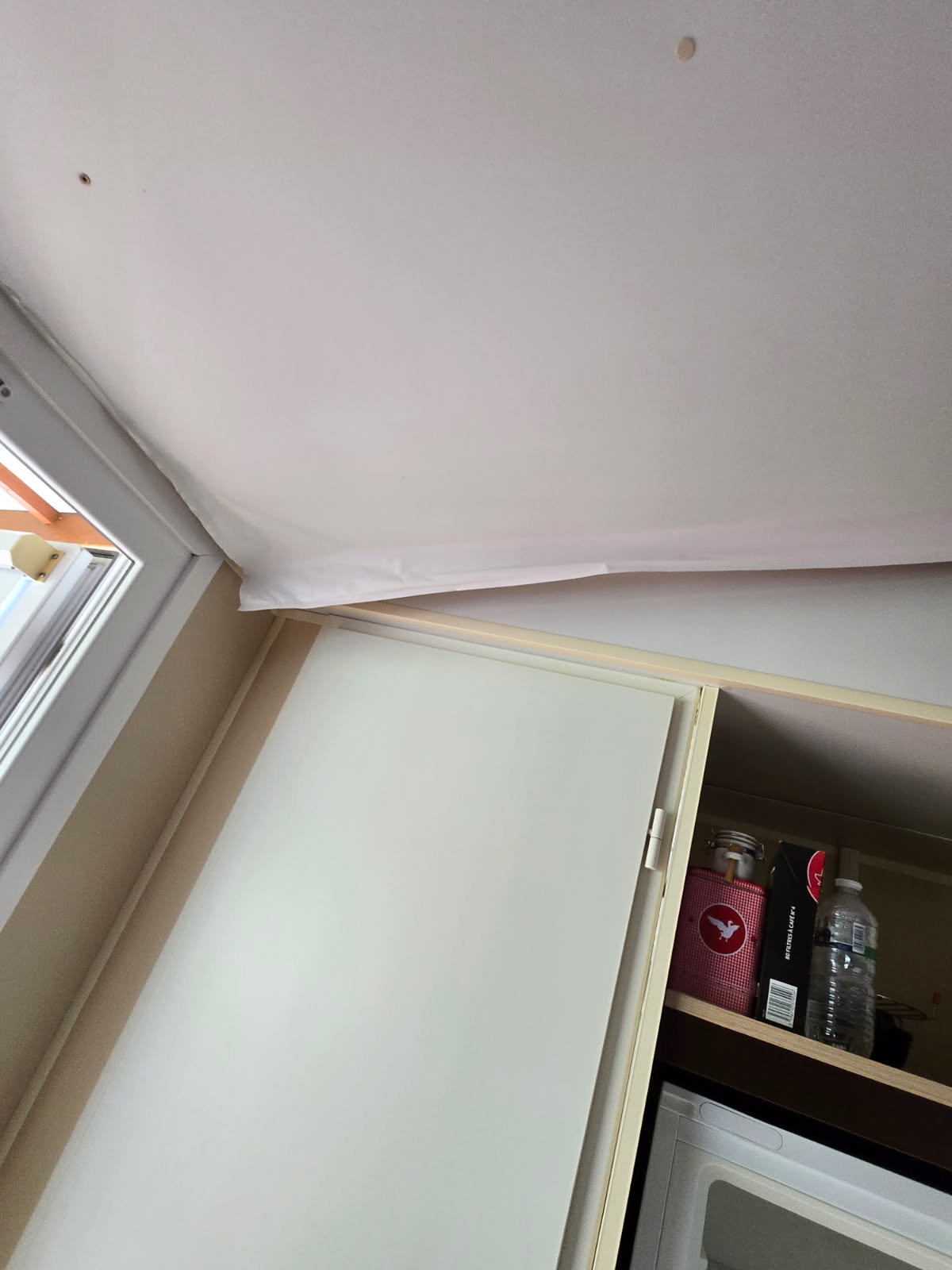 Un défaut est apparent à l'intérieur de celui ci au niveau du plafond (les différences de températures n'ont pas parmi à la colle de tenir correctement), il n'y a pas d'obligation de les changer puisque ce n'est pas dû à une infiltration d'eau mais bien à une colle utilisée par l'usine non adaptée.