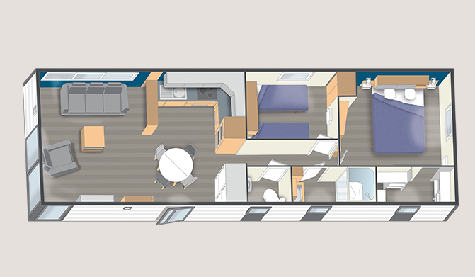 Nous vendons un très beau mobil home de la marque Nautil home, gamme Cocon Belle île de 12 * 4 m, il s'agit du 12.7 en 2 chambres de 2022.