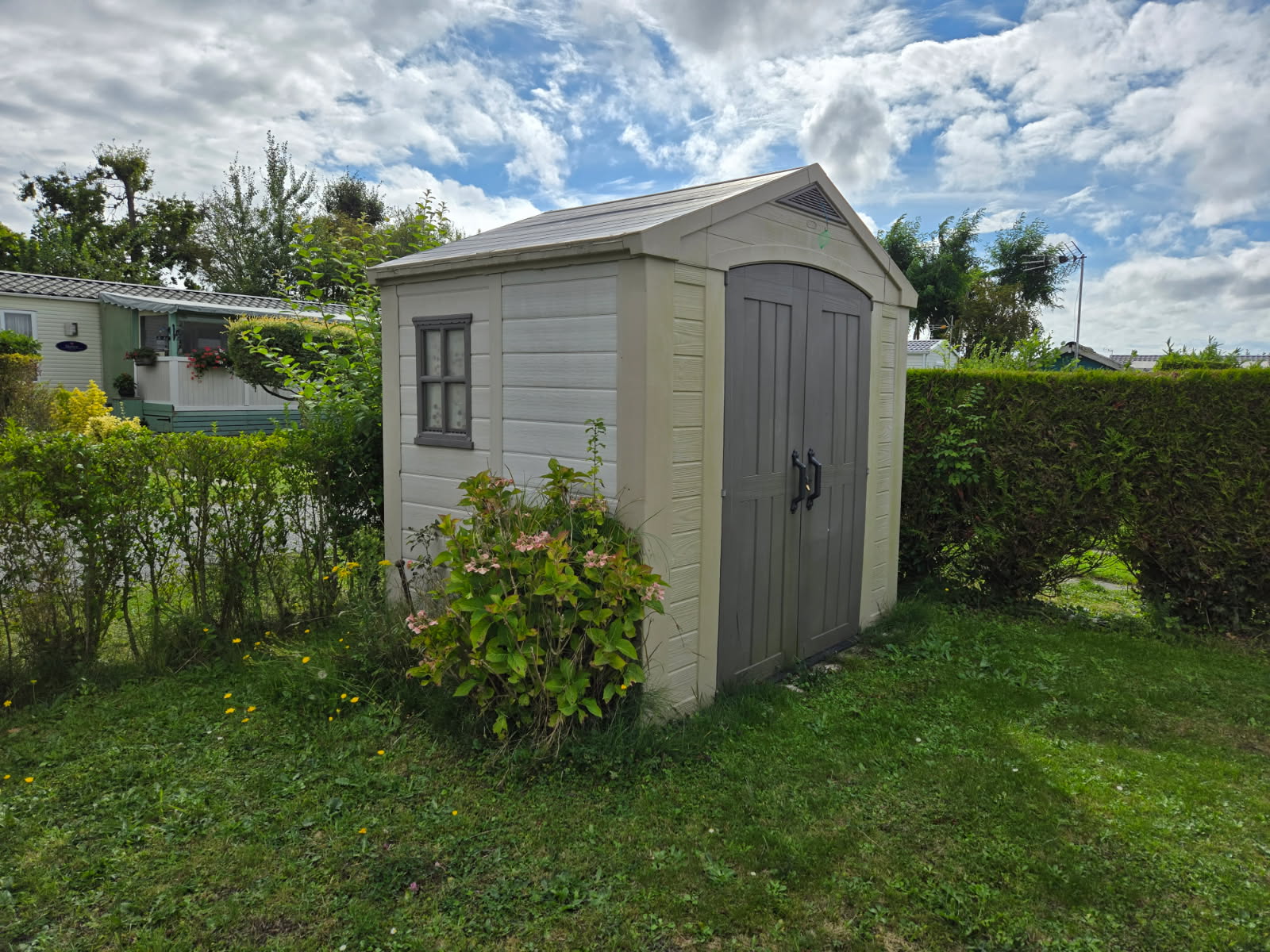 Vous trouverez également un chalet en PVC de la marque DACRI de 5 m² ainsi qu'un coffre de rangements d'une valeur de 5 000€.